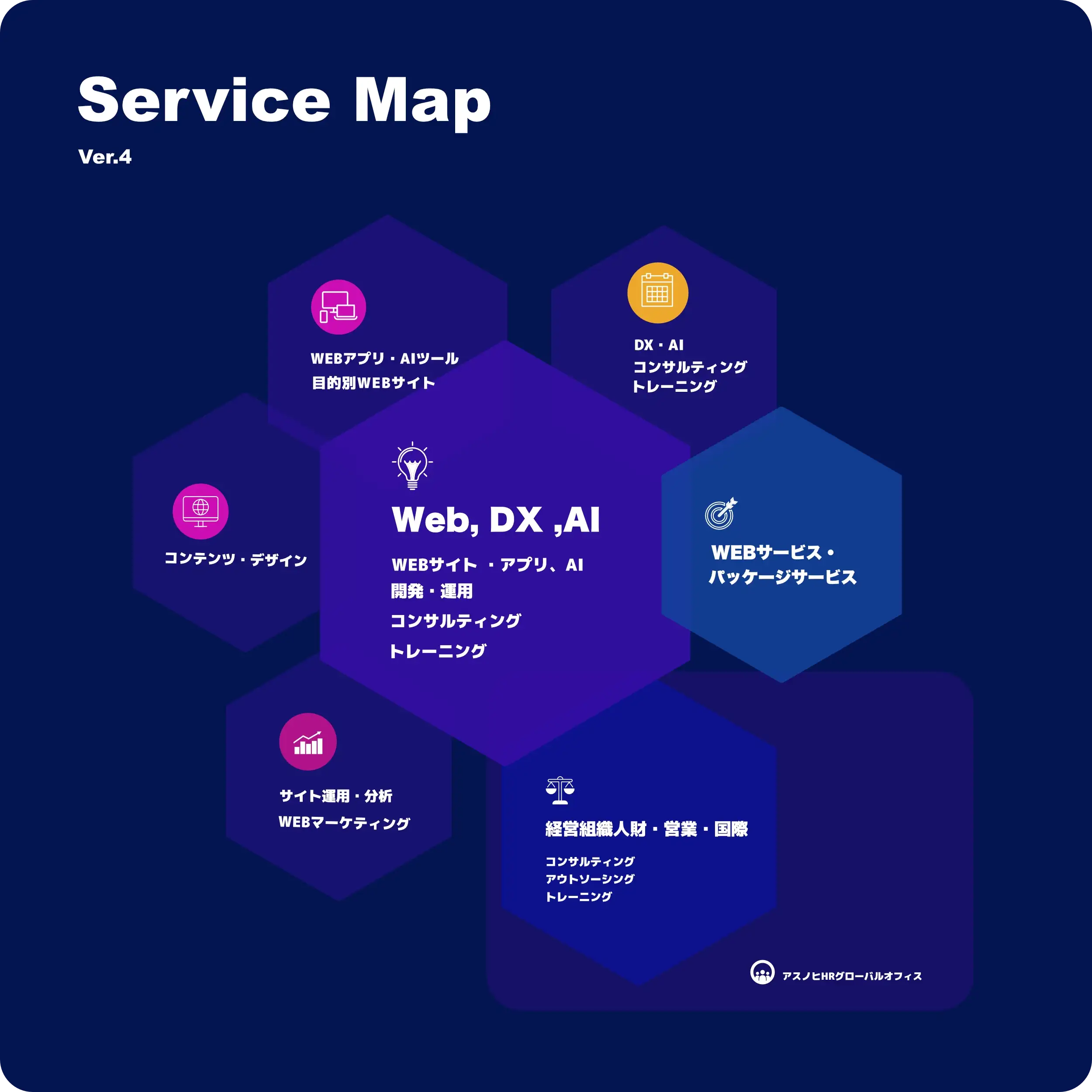 サービスはアスノヒHRグローバルオフィスにより提供されます。デジタルとヒューマンを最適化したサービスを提供し、変化の時代にチャレンジするお客様の課題解決に取り組んでいます。