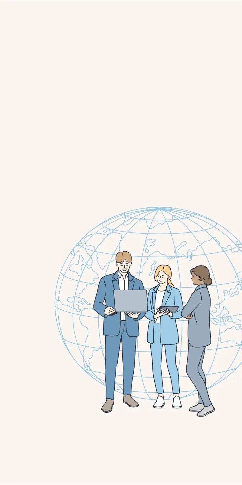 海外滞在歴のある、海外営業・マーケティング、貿易手続きの知識や経験および、貿易関連資格を保有したスペシャリストが国際組織人財体制、国際展開の支援を行います。多言語の対応も可能です。
